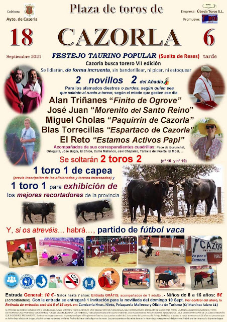 *Sábado 18 Septiembre 2021:12:15 Bolsín Taurino con Aficionados Prácticos Locales con Reses de la Ganadería de Tornay en la Plaza de Toros.
